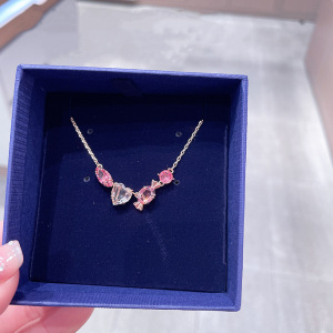施家1:1对版分红色糖果项链女施华洛元素水晶爱心锁骨链厂家代发