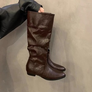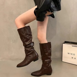 软糯好穿!奶白皱褶2025秋季新款长筒靴子女低跟粗跟不过膝骑士靴