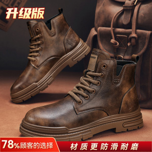 马丁靴男2025新款夏季复古百搭英伦风工装鞋美式高帮机车皮靴春季