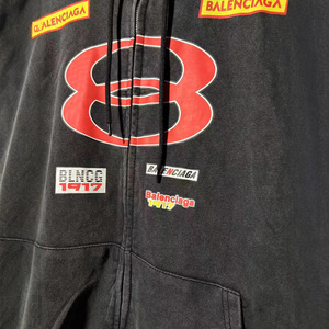 外贸秋冬新款巴黎B家 双环印花洗水开衫卫衣连帽外套男女款一件发