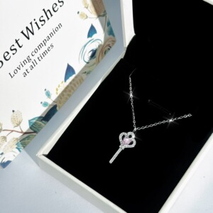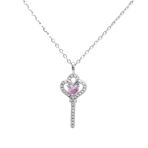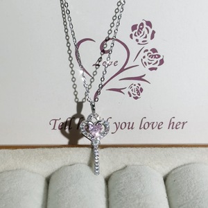 原创S925纯银粉钻爱心魔法棒项链女甜美少女心锁骨链七夕生日礼物