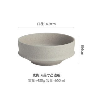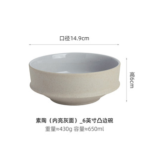 素陶(内亮灰面)_6英寸凸边碗/容量650ml
