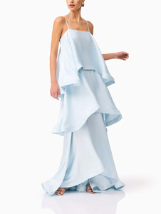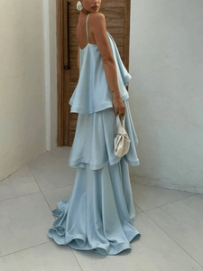 亚马逊跨境女装优雅宽松三层荷叶边吊带长裙独立站外贸新款连衣裙