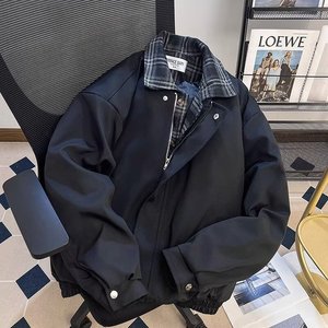 复古格纹拼接假两件外套男女春秋新款棒球服夹克翻领上衣服潮男装