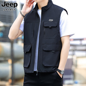 JEEP吉普春季男速干背心帅气马夹马甲外穿休闲立领户外运动8580