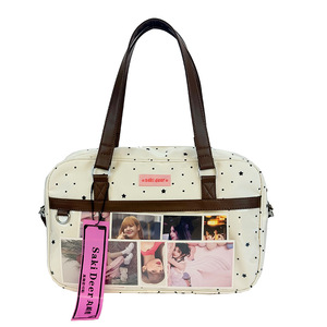 薄巧星痛包可爱波点星星日系痛包单肩包上课包通用帆布包双层透明