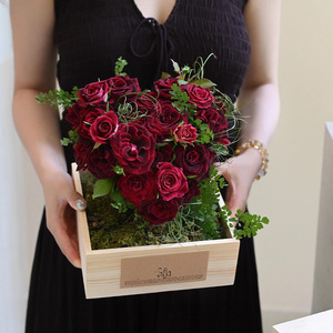 七夕方形木盒鲜花插花盒花束礼物装饰花艺手工礼品永生花花盒批发