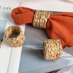 批发亚马逊新品手工编织水葫芦草餐巾环餐巾圈草编餐巾扣纸巾环