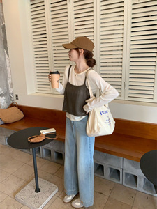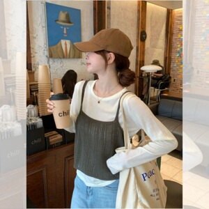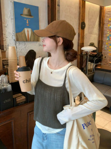 韩系chic白色长袖内搭叠穿针织吊带两件套女早秋季设计感穿搭上衣
