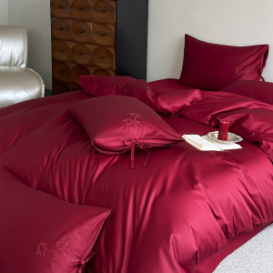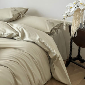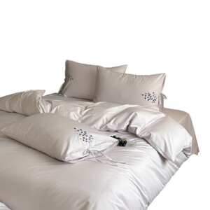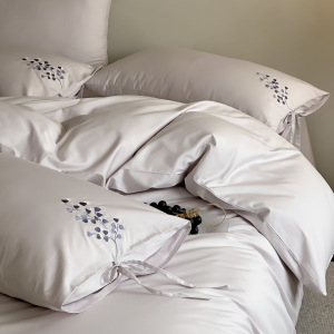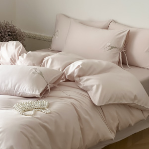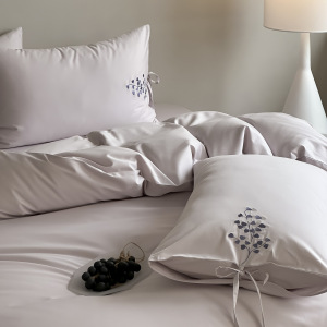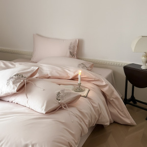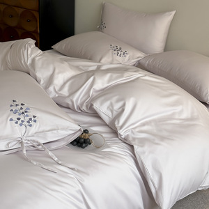 100S高支全棉四件套少女感紫色刺绣花卉纯棉床单床笠提花长绒棉
