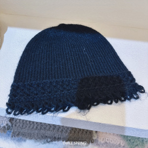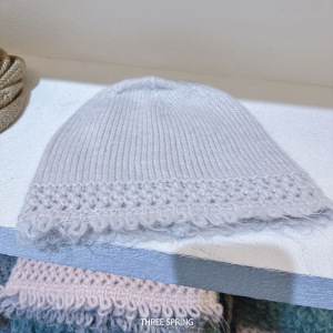 批发韩国2025年早秋新款条纹毛边堆堆帽女包头冷帽韩版针织毛线帽