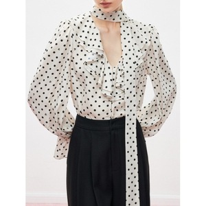 2025新款法式蝴蝶结飘带波点卡圆点衬衫女秋季长袖气质缎面上衣