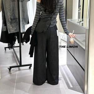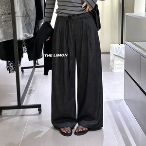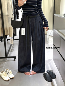 柠檬绿茶2025秋季新款韩版宽松松紧腰抽绳天丝休闲牛仔裤女配腰带