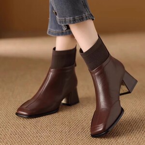 5cm复古针织弹力短靴女2025年秋冬新款粗跟中跟高跟毛线口马丁靴