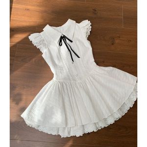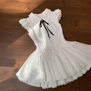 女童蕾丝拼接甜美蓬蓬裙中大童韩系纯色夏季新款飞飞袖公主风裙子