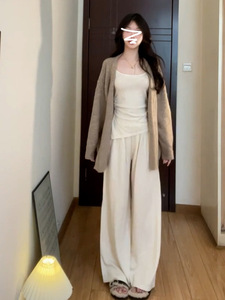 慵懒风早秋穿搭燕麦色毛衣针织开衫女春秋2025高级感宽松休闲外套