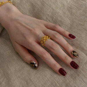 中古vintage宫廷风金色贝母浮雕戒指轻奢复古高级感开口设计指环