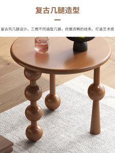 法式复中古小边茶几可移动沙发圆床头柜客厅黑色胡桃木桌子置物架