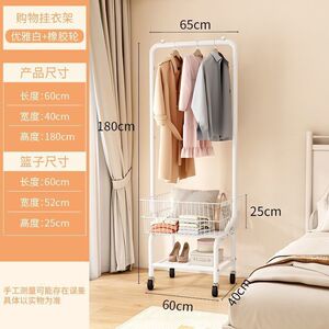 闪亮银挂衣架+收纳篮【橡胶轮】