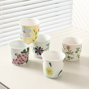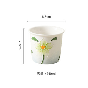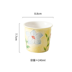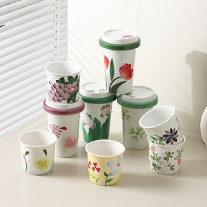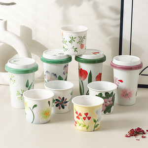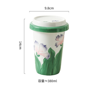 创意ins手绘堆料花朵郁金香花朵带盖陶瓷水杯高颜值手握家用水杯