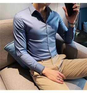 长袖衬衫男商务休闲正装免烫高端春秋新男士衬衣纯色修身潮流批发