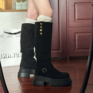 两穿不过膝靴子女2025新款秋季复古百搭显瘦增高厚底西部骑士靴女