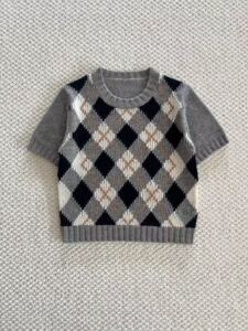 南油高定!yb开发25新款学院风菱形格羊绒T恤上衣女