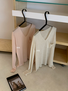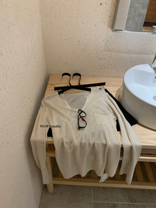 WGWE秋季韩系慵懒V领防晒罩衫女宽松显瘦轻薄针织衫长袖T恤W6647
