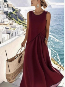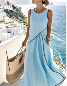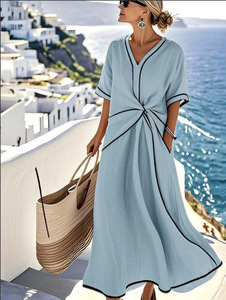 独立站欧美夏季新款波米西亚风格气质优雅连衣裙跨境气质通勤长裙