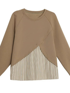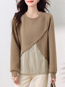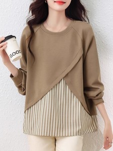 跨境2025春秋款休闲设计感拼接假两件卫衣女宽松时尚长袖上衣批发