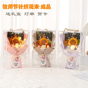 2025新款手工钩织向日葵毛线花束礼盒教师节实用礼物送老师康乃馨