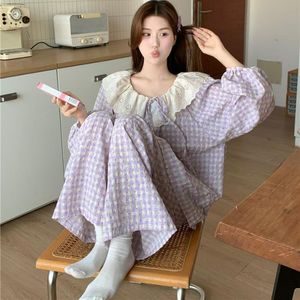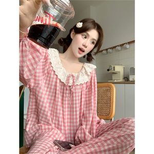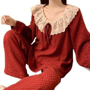春秋天新款睡衣女长袖宽松慵懒云朵棉家居服花边学生甜美套装跨境
