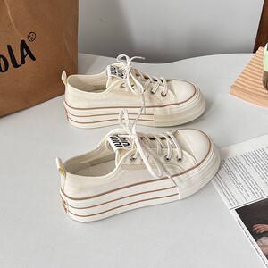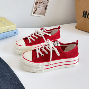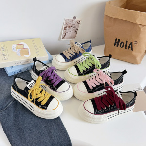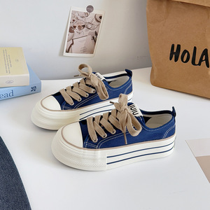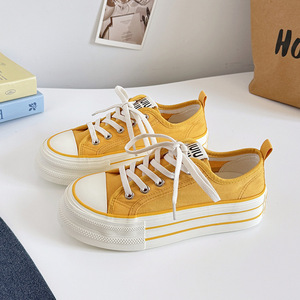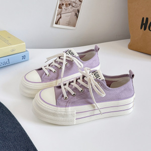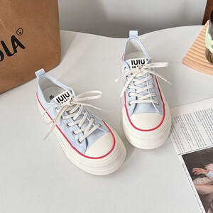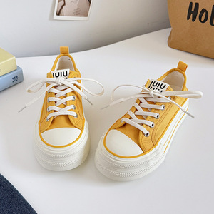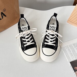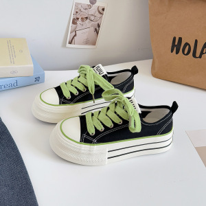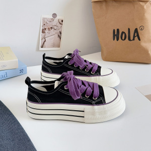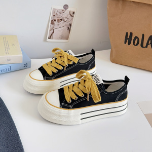 港风小众黑色厚底帆布鞋女2025新款早秋百搭学生板鞋运动鞋H1323