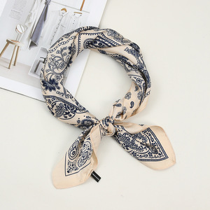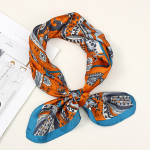 跨境腰果花方巾丝巾女70cm韩版仿真丝防晒披肩高级感时尚领巾头巾