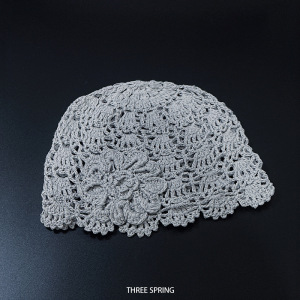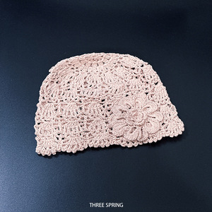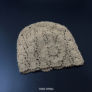 批发韩国2025年早秋新款镂空钩花套头帽镂空针织包头帽冷帽月子帽