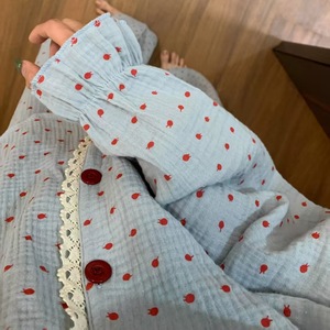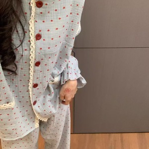 设计感波点印花棉纱睡衣女春秋2025新款纯棉长裤家居服时尚套装夏