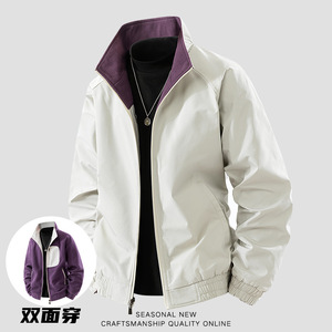 两面穿 跨境秋冬新款立领户外防水外套男徒步登山服工装宽松夹克