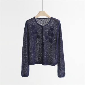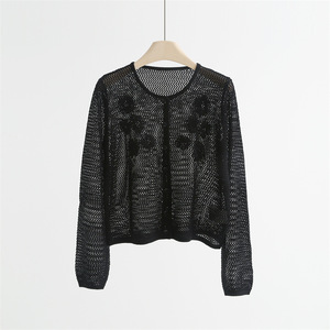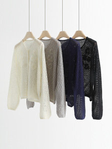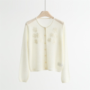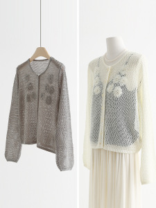 法式优雅设计重工手绣钩花镂空网眼针织开衫秋新款外套上衣17079