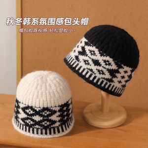 秋冬爆款菱格毛线帽韩版百搭防风保暖帽子女复古包头帽显脸小冷帽