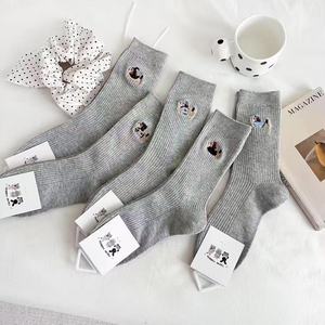 秋冬女士双针刺绣灰黑系列长筒堆堆袜卡通字母高筒潮流韩系小腿棉