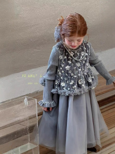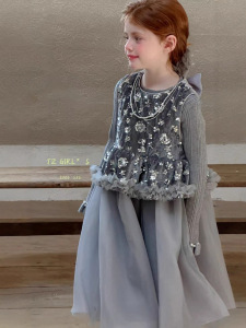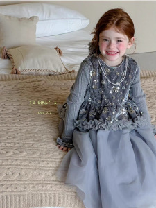 女童公主裙2025秋冬新款儿童中小童加绒背心裙亮片丝绒连衣裙礼服