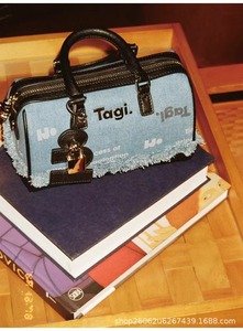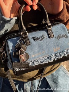 Tagi枕头包百宝箱女包尼龙积木牛仔拼皮单肩手提斜挎mini波士顿包