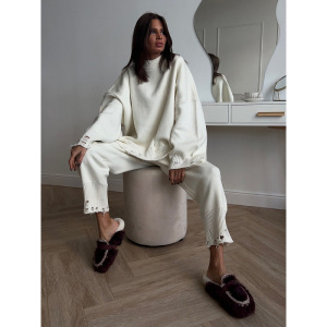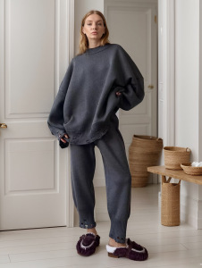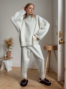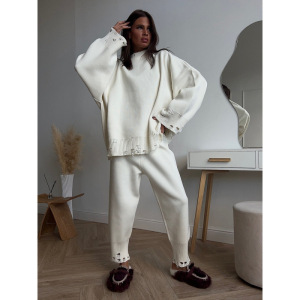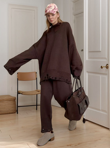 跨境破洞毛衣套装女欧美2025秋冬ins风针织小脚裤+高领毛衣套装女