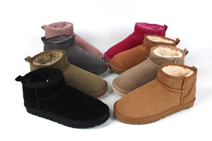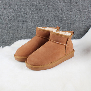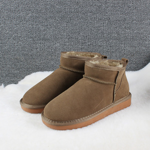 新款周冬雨同款牛皮低筒保暖女靴子大码棉鞋现货批发一件代发货鞋