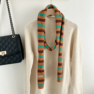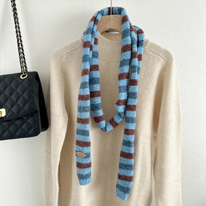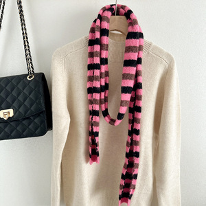 韩国东大门撞色针织飘带含羊毛三色皮标氛围感时尚围巾软糯细披肩