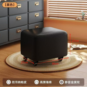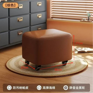 万向轮小凳子家用高级感滑轮矮凳换鞋凳靠背小椅子实木板凳溜溜椅