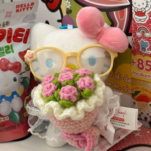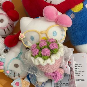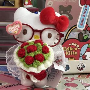 可爱手捧花眼镜卡通kitty包包挂件公仔毛绒玩偶钥匙扣书包挂饰礼