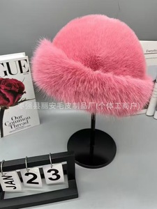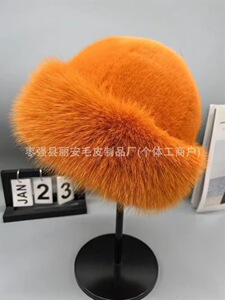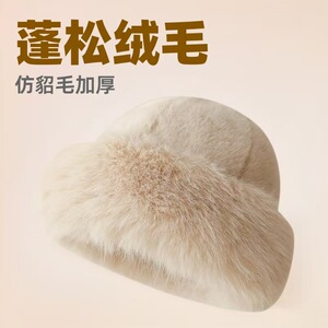跨境新款蒙古帽仿皮草毛绒帽子女秋冬防寒保暖盆帽时尚百搭渔夫帽