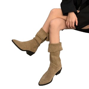 堆堆靴复古小众小个子长筒靴法式女靴子夏秋棕色西部牛仔靴骑士靴