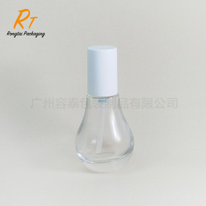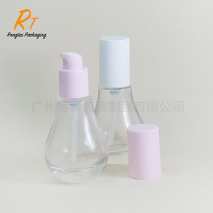新款 30ml小灯泡精华液瓶 按压式乳液瓶水滴形原液分装玻璃瓶包材